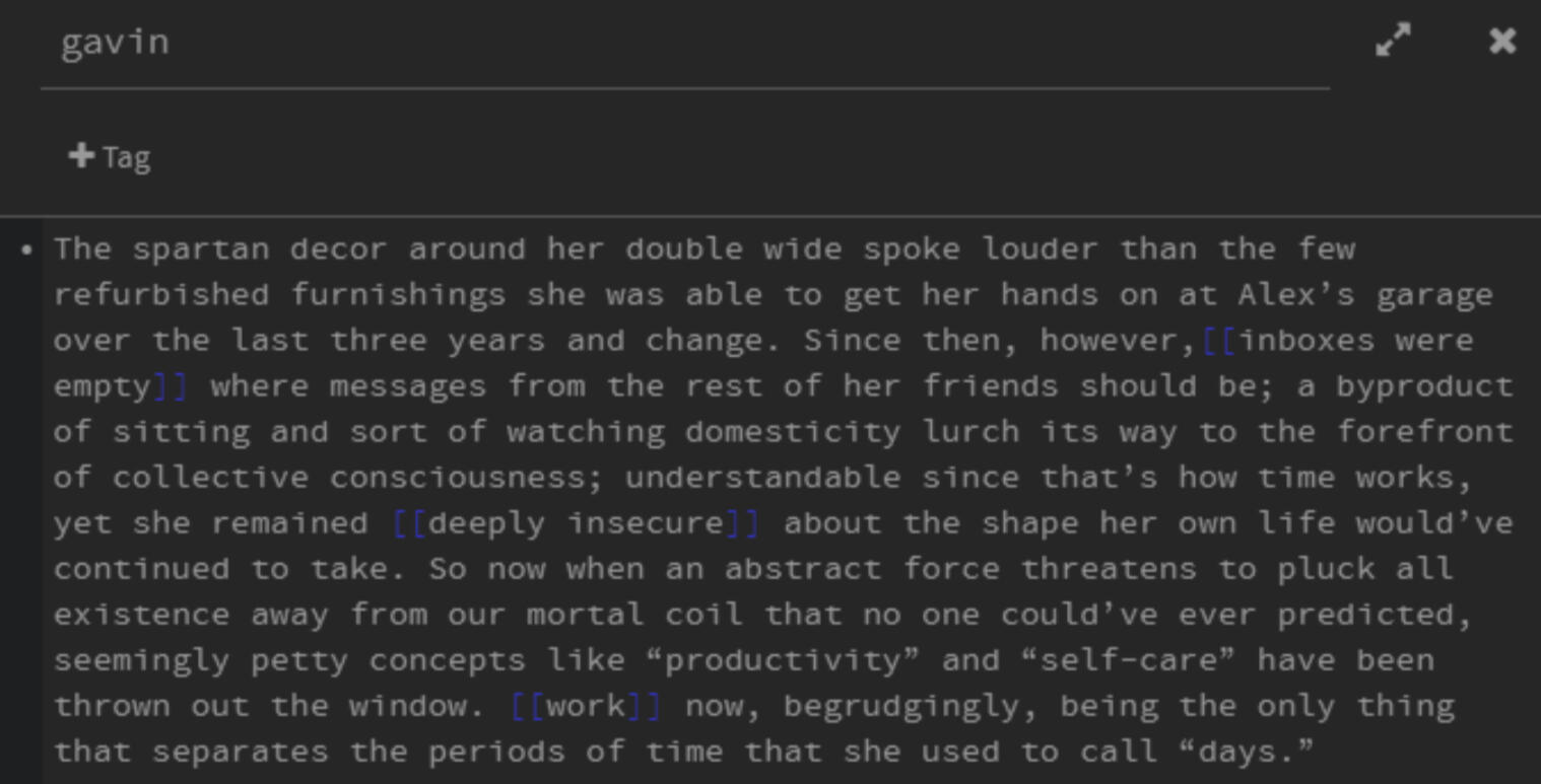 Hands down, the most important lesson I learned while making this game is the importance of economic dialogue & prose. In order to keep a Twine game interesting - there needs to be a focus on clear and direct language which is something this game adresses through telegraphing branches in points of action that always reveals a new aspect of a character’s personality while doing something that moves the plot forward. This keeps the profluence smooth while always keeping the script dynamic.Another important lesson that I learned was one of project management. Operating from a base understanding of my writing style, I set up an internal management system that was a fusion of waterfall and scrum methodologies that resulted in giving me a clear roadmap of exactly what deliverable was expected of me and when. Ultimately it resulted in the creation of a product I’ve been proud to have worked on.