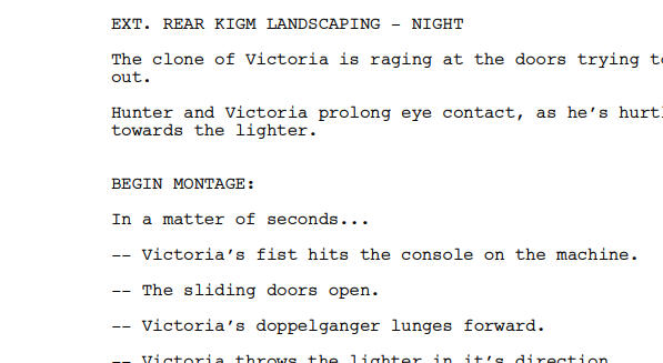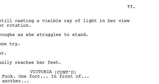 A sample of script taken from a released project about the end of the world. 3 pages.